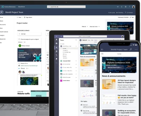 Create, share ideas, and make decisions with content management and collaboration tools that seamlessly integrate with other applications including OneDrive for Business, and Microsoft Graph.